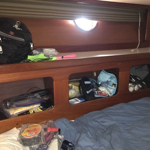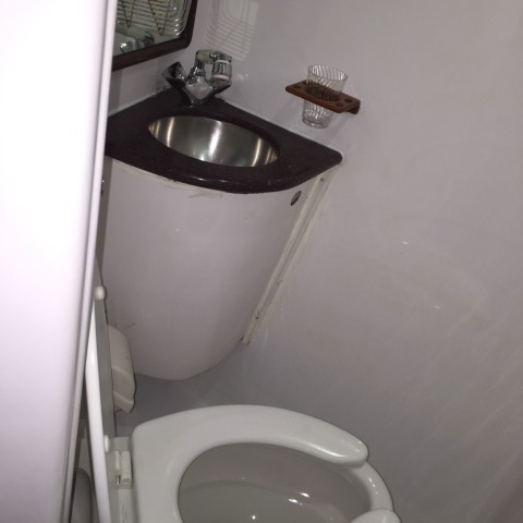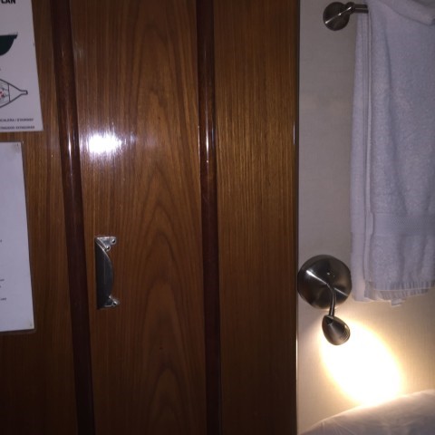 Cabins on dive boats tend to be small, but my cabin on this trip was the smallest ever! I could barely turn around in it, and did not really try to, but it had ample storage, a bed with more storage, and a combo shower/toilet sink. Divers do not spend much time in their cabins, so they are really just for showering and sleeping.