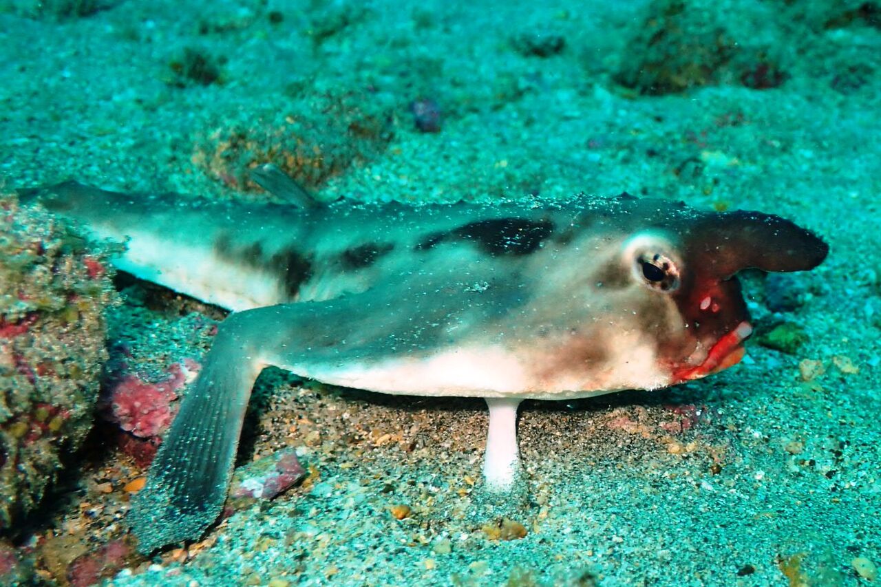 Possibly the most odd looking fish to be found during the trip, the Red-lipped batfish is a flattened pancake shaped fish with protruding “lips”, beady eyes and pectoral fins adapted into walking appendages. We found our first ones at Wolf Island, resting down on the sandy seabed at 27-32m. These fish can be approached by divers but you need to be cautious as they can swim pretty fast and tend to head directly to deeper water. Positioning ourselves between the deep and the batfish the photographers among us were able to get some cracking shots. We also discovered that we had seen the lesser known Rosy-lipped batfish too. These can be identified by the small white hairs under their chins! Another one was found at Cabo Douglas too.