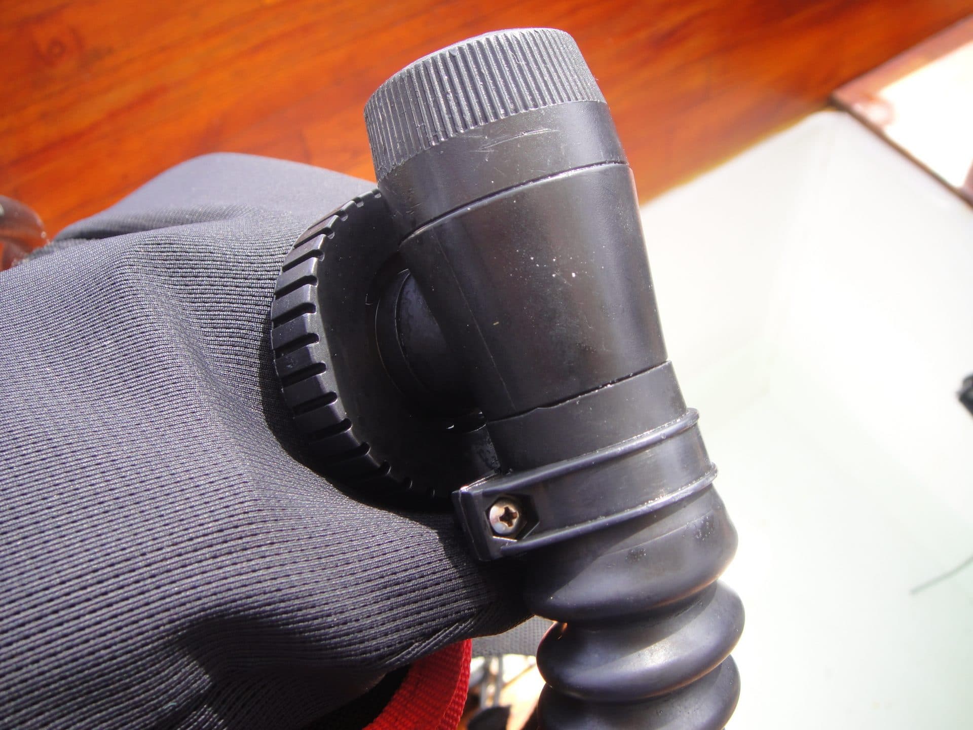 The problem that had caused Ian’s BCD to fail on this occasion was that his corrugated hose was only connected to the BCD pump mechanism by a single cable tie and this cable tie had broken and come off. Cable ties are notorious failure points, which is why all good BCD systems have TWO cable ties or a permanent heavy-duty screw fitting at each end of the corrugated hose.
