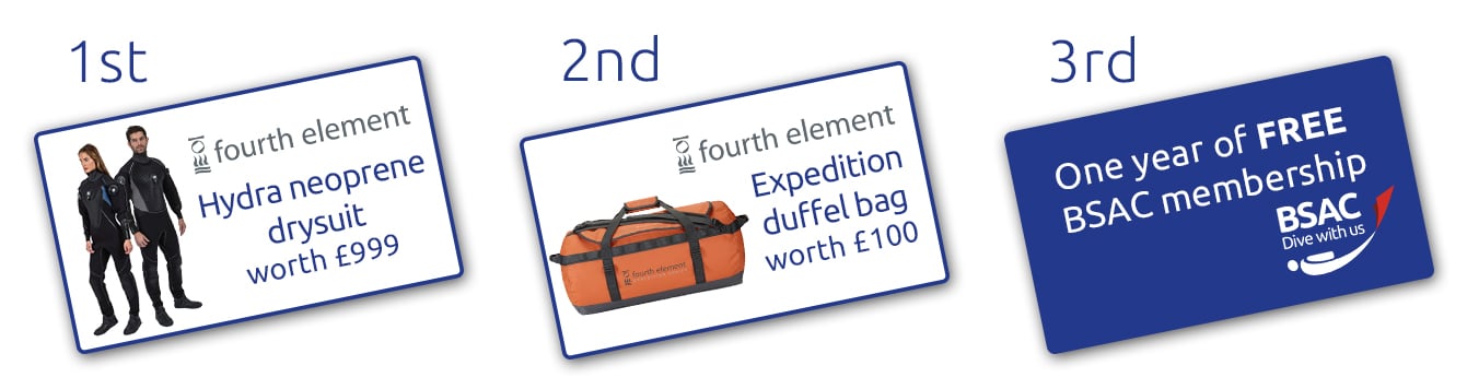 They are inviting you to share short UK diving or snorkelling videos – tagged #DiscoverUKdiving or #DiscoverUKsnorkelling – to be in with a chance of winning a Fourth Element Hydra Neoprene Drysuit worth £999 (or an alternative non-diving suit if a snorkeller wins). There are other prizes up for grabs too, with a Fourth Element duffel bag going to second place and a year’s BSAC membership for third.
