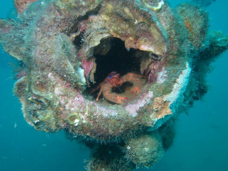 Today she lies upright in 41 meters with her main deck at 33 meters and is reported to be a great dive. Covered in sponges and mussels, her superstructure makes a good rummage dive and her steam engine can be seen through large holes in her collapsing main deck. For more adventurous and suitably trained divers it’s possible to explore large parts of the ship’s interior as the passageways and holds are quite wide and safe.