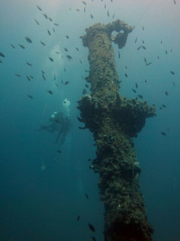 Wreck number 2 was a 4400 ton freighter recently identified as the Hans Schmidt lost in 1943. Built in Holland in 1920 and originally named Albirgo she had several owners, the last being a German company who renamed her Hans Schmidt. On 27th January 1943 she was in convoy laden with war materials when she hit a mine near Pula which totally destroyed her forward hold.