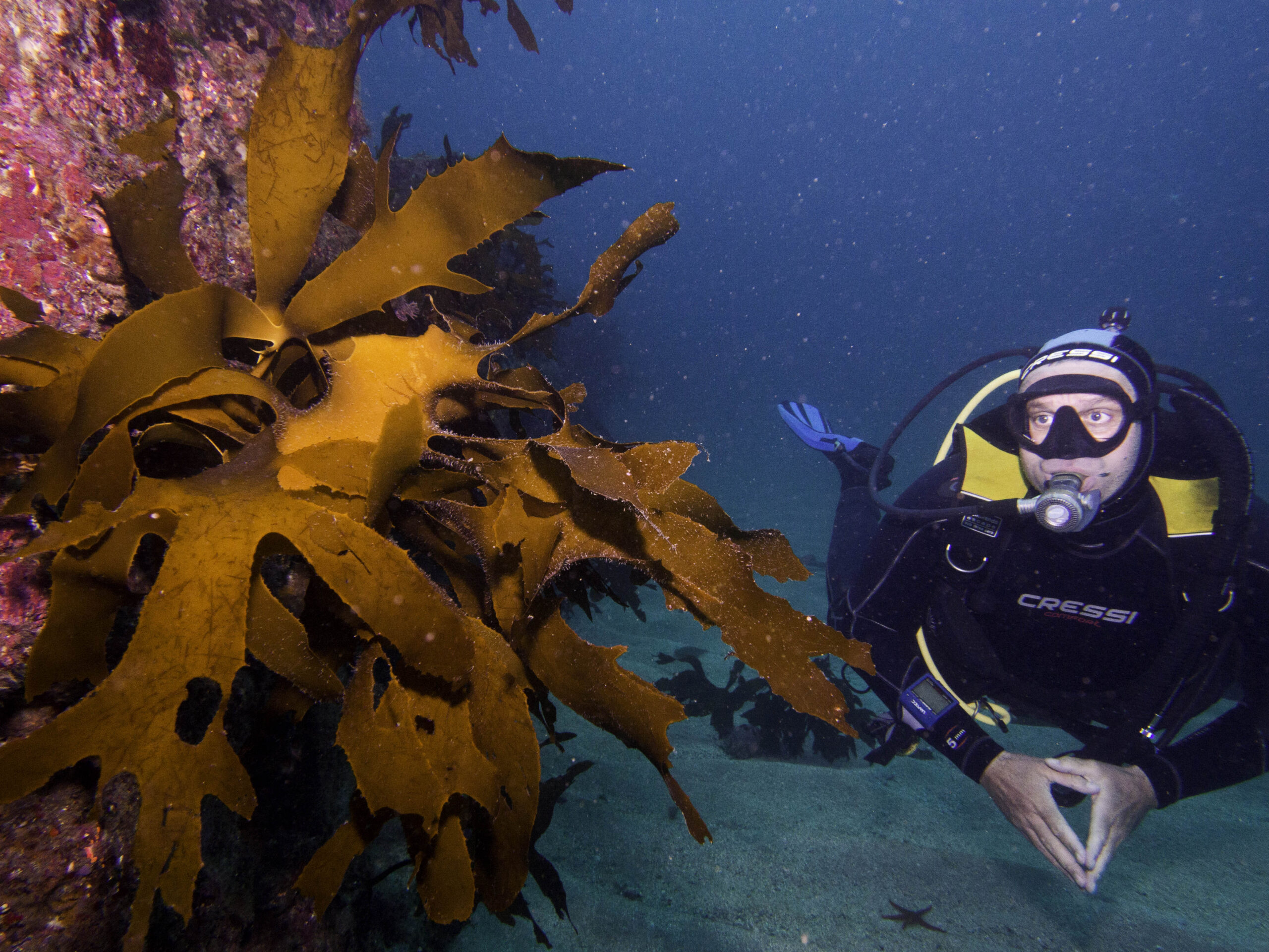 I had fallen behind the group, again, and as I caught up with them they were all gathered round a couple of rocks, looking intently at something. Ralf, our dive guide, was pointing out. As I approached them, they all let me through (they were a lovely group to dive with!) to have a look and here were two beautiful, bright orange nudibranchs, both about six inches long, and certainly not something I expected to see among the kelp whilst diving off a harbour breakwater!