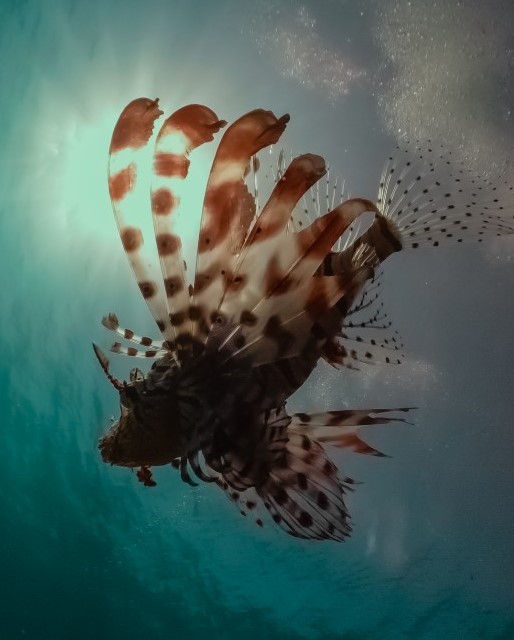 If you are shooting into the sun, then silhouettes are a good example where you have to be very careful when custom white balancing. This shot of a lionfish was taken on a point and shoot Canon camera nearly 8 years ago. I locked my exposure using a half press of the shutter release, whilst pointing at the brightest area, and based my white balance reading not on my hand or the subject, but on the surface water itself. Helping prevent those awful white balance issues shown above.
