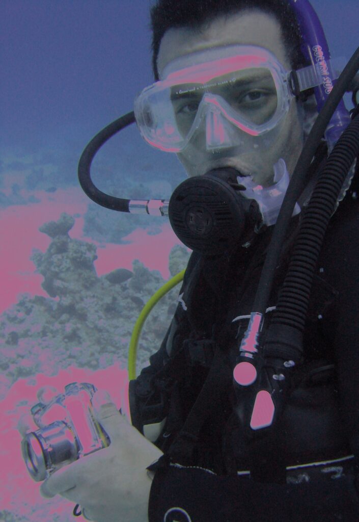 So along with the colours not being as great, what can happen when we go deeper, especially if we are using a fully automatic camera, is that we start to see blur – and camera shake appears.
