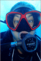 “In the pictures here is my wife, mother of our kids, my buddy underwater, in her happy place and surroundings. You can google her name and the images that come up are far away from wetsuits, night dives and liveaboard trips unfortunately. Luckily, she can show up at home with a nice mask squeeze from time to time due to various protective equipment!