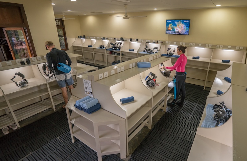 The spacious designated camera room gives each guest a workbench with lighting and plenty of plug sockets for charging. Our Backscatter authorized photo center offers photography courses, rental cameras and camera accessories including strobes, tripods, filters, underwater videography equipment and accessories, a purpose built drying box (in the event of leaks), and a 3D printer for manufacturing new items.