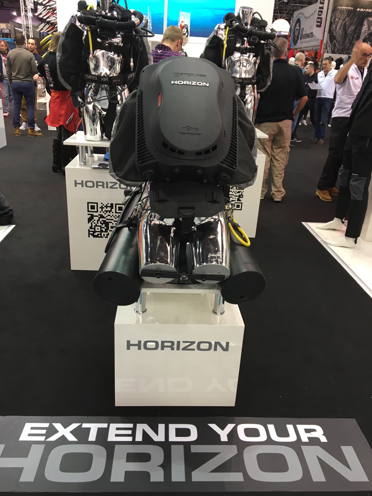 Mares were celebrating their 70th anniversary at Boot and their most exciting new product had to be the Horizon Rebreather – launched at the show. There was huge interest in this new Semi-Closed Rebreather, with queues forming just to see it.