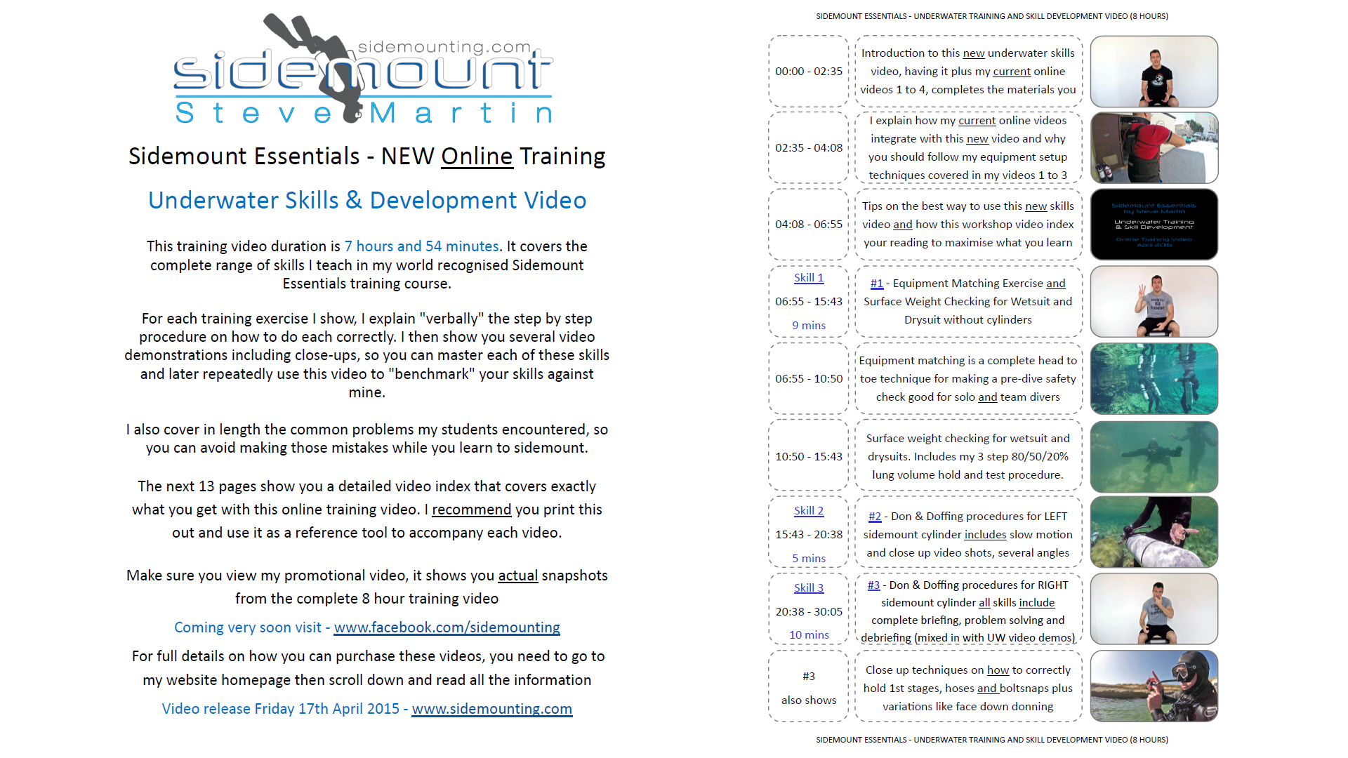 Steve Martin, one of the world’s leading sidemount diving instructors, has completed his Online Sidemount Essentials training video series with the release of an 8 hour video on Underwater Skills and Development.