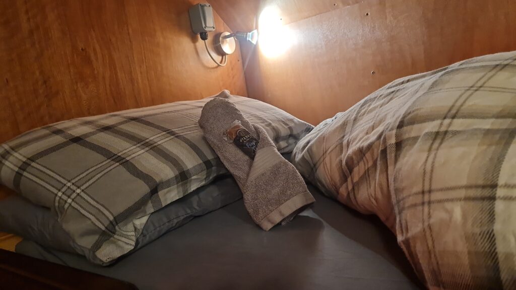 5 of these are on the lower deck, each with en-suite shower and washbasin and 1 cabin with an adjacent toilet and shower on the main deck. All cabins are centrally heated and very cosy.