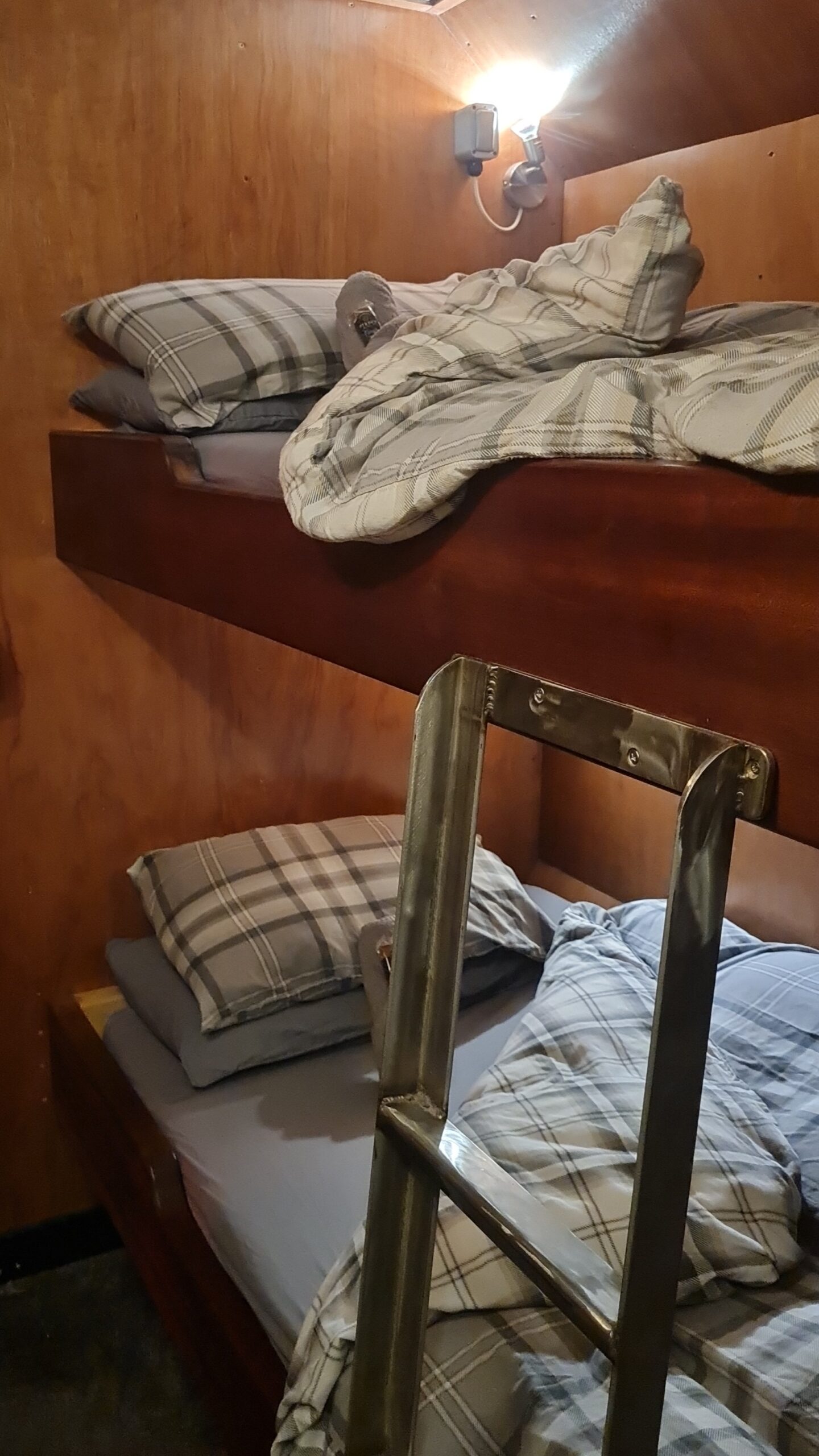 She has an up to date bridge electronics package and multiple redundancy giving her the capacity and safety to go anywhere with her MCA CAT 1 coding (up to 150 miles from shore), and her 500hp main engine that can drive her at a competition beating 12 knots for up to 25 days.