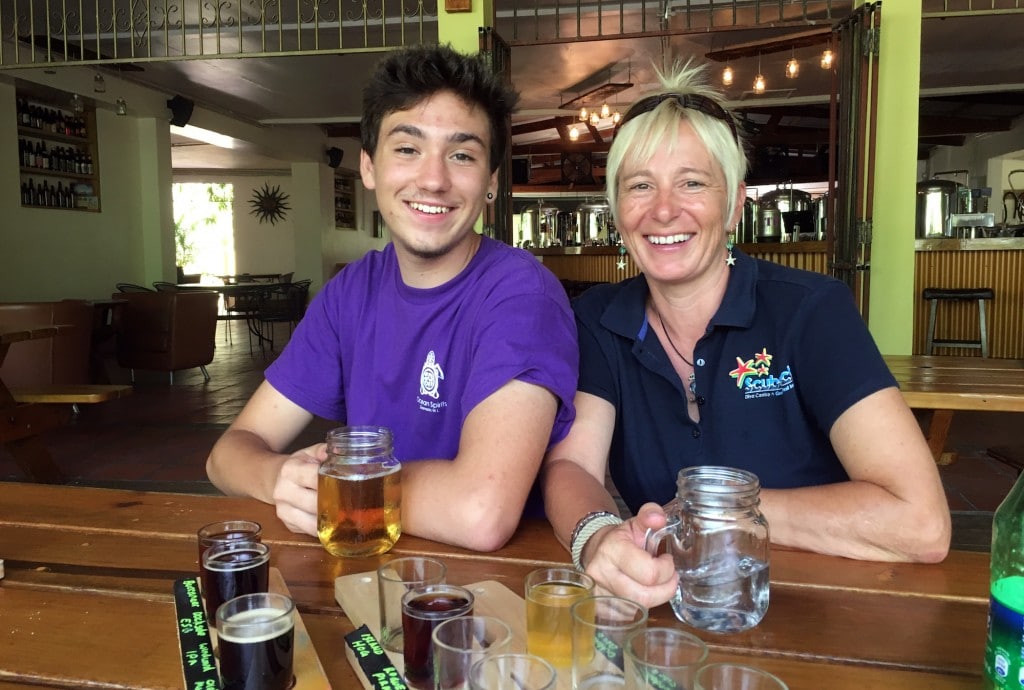 The afternoon dive was cancelled due to unforeseen circumstances and so I had an extended lunch with Eveline and her son at the West Indies Beer Company. Behind the bar were rows of distilling tanks each giving off a wonderful aroma of the best kind of home brew. We decided to go for the taster trays which when produced held 18 small glasses, one for each brew. On top of that, Janet the owner provided a fantastic ice cream pudding to finish it all off.